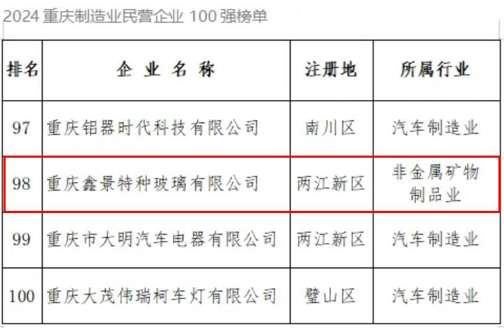 重慶制造業(yè)百強(qiáng)企業(yè)是地區(qū)制造企業(yè)的標(biāo)桿和推動(dòng)經(jīng)濟(jì)發(fā)展的中流砥柱,也是窺見制造業(yè)轉(zhuǎn)型發(fā)展的“風(fēng)向標(biāo)”。公司十余年堅(jiān)持創(chuàng)新引領(lǐng)的發(fā)展道路,專注高端特種玻璃新材料領(lǐng)域的研發(fā)與應(yīng)用,實(shí)現(xiàn)了關(guān)鍵技術(shù)突破,產(chǎn)品贏得了市場的青睞。
